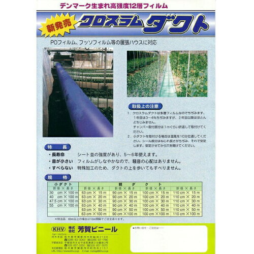 クロスラムダクト ビニールハウス用温風ダクト 折径90cm×50m 厚0.14mm 極厚 高耐久 長寿命 ブルー カ施 送料無料 代引不可