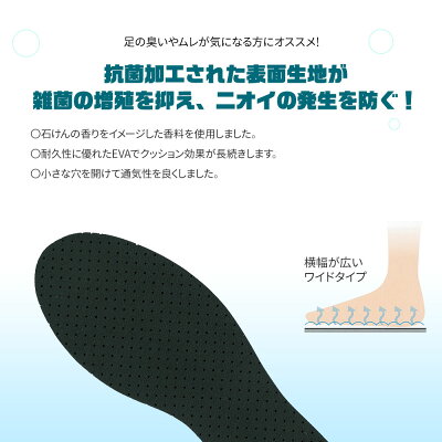 商品詳細 【悪臭ブロックインソール】 ・石けんの香りを楽しめるインソールです。