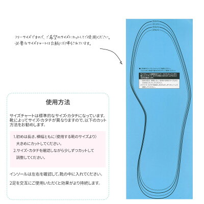 【サイズ】 ・男女兼用フリーサイズ(29.0cm-32.0cm) 【使用方法】 使用法: 1.初めは長さ、横幅ともに(使用する靴のサイズより)大きめにカットしてください。