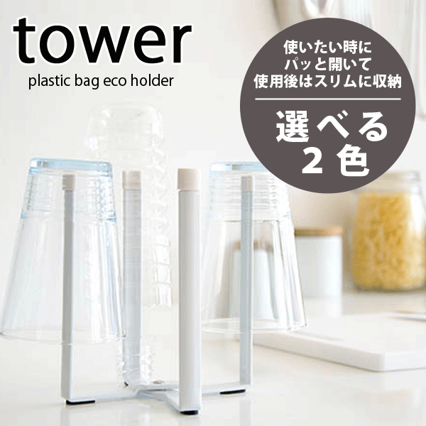送料無料 【ポイント10倍】 ポリ袋を調理中の便利なクズカゴに! ポリ袋エコホルダー タワー 高さ16.5cm(キッチン デザイン ポリ袋 スタンド キッチンエコスタンド ペットボトル スタンド ゴミ箱 ごみ箱 収納 水切り ラック tower)