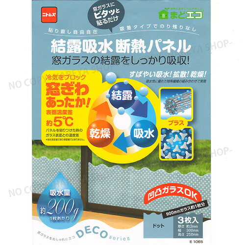 結露吸水断熱パネル デコシリーズ ドット 30cm×25cm×3枚 ぴたっと窓に貼り付く 貼り直しOKの吸着タイプ たっぷり結露吸水+断熱 ニトムズE1065