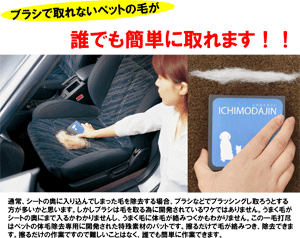繰り返し使える他にはない特殊な素材でできたパットを、シートやカーペット、ソファーなどに擦り付けるだけで毛がまとまり、簡単に取り除けます。